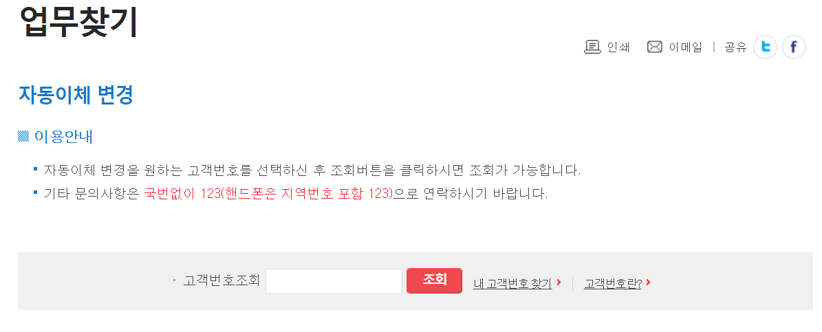전기 자동이체 변경하려면 123에 전화하는 방법도 있습니다.