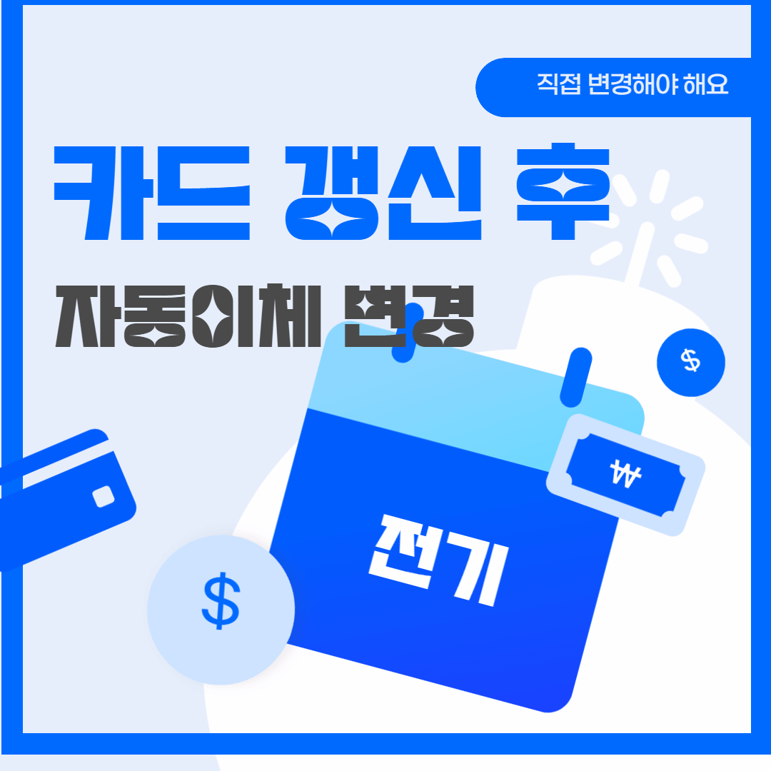 카드 갱신, 재발급, 새 카드 수령 후 기존에 카드로 결제되는 자동이체를 꼭 직접 변경해주어야 합니다.